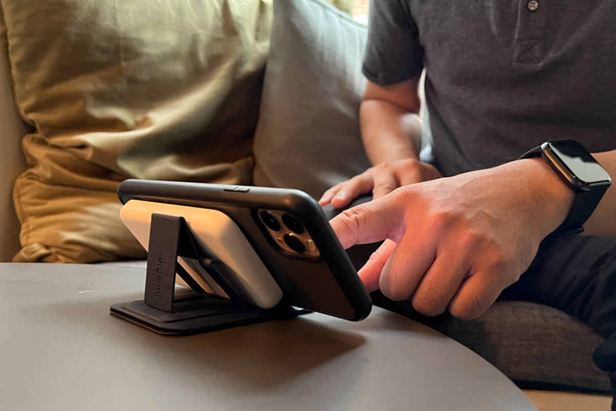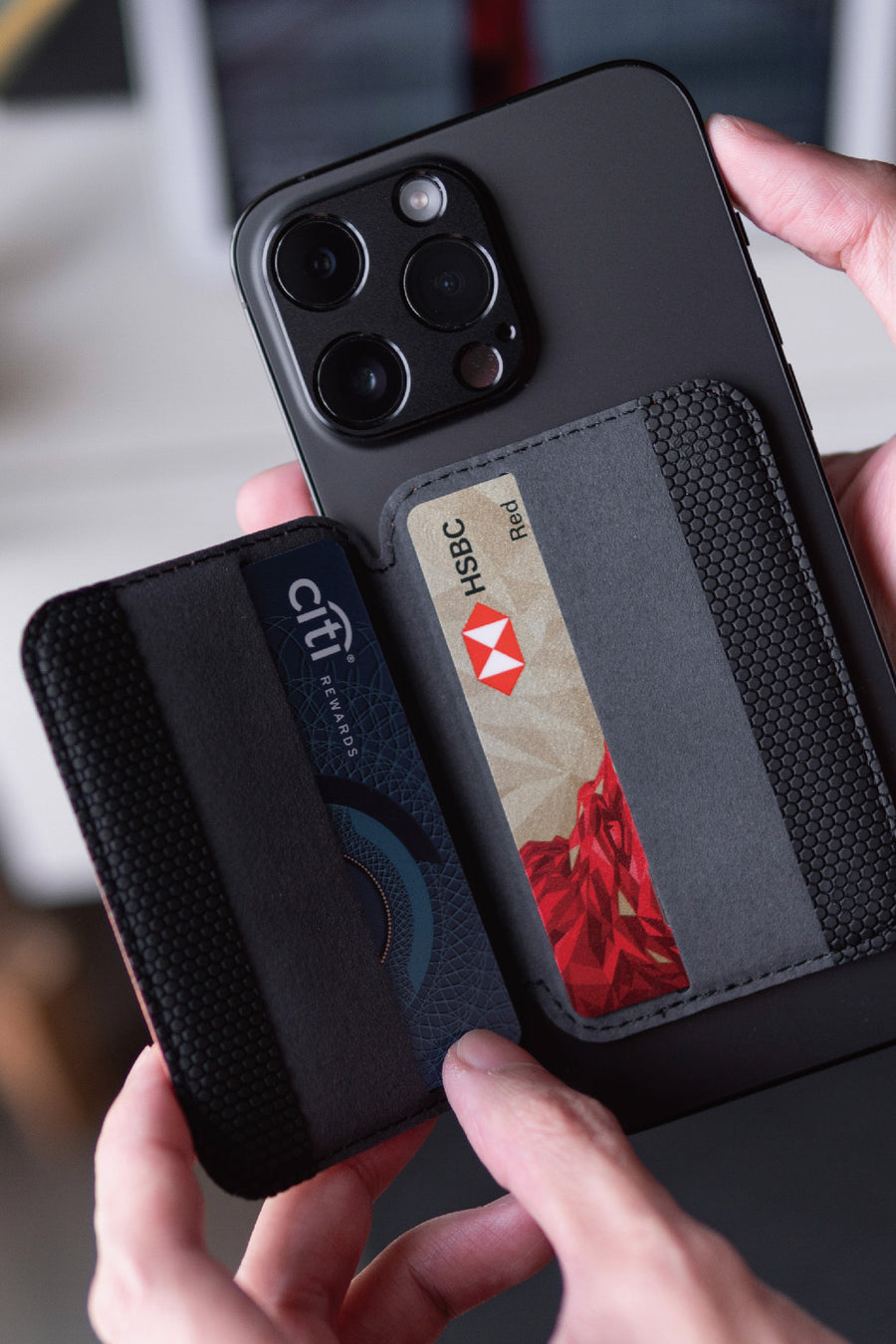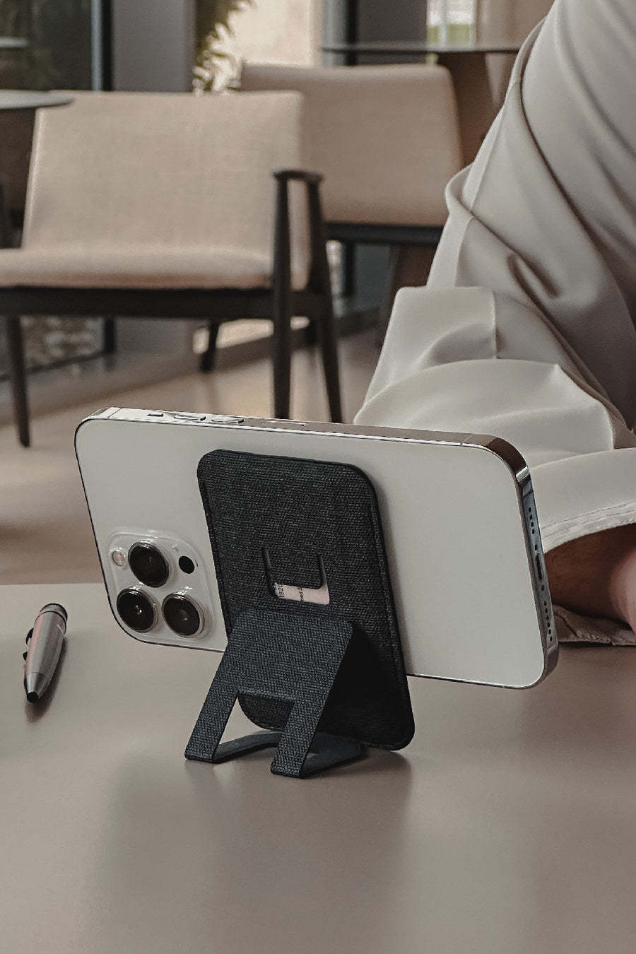 View full detailsMagnetic Wallet Stand - A minimalist phone wallet and card holder made of vegan leather. Includes a metal ring for use with non-MagSafe devices as ...