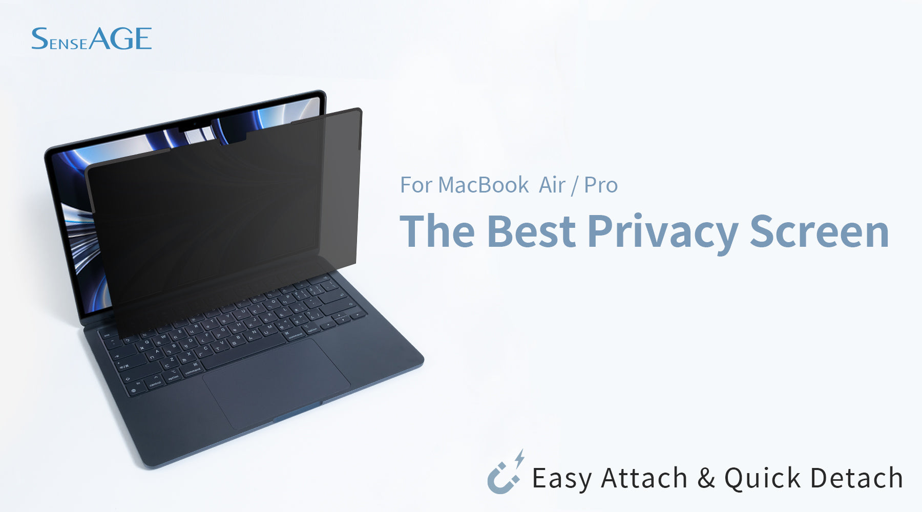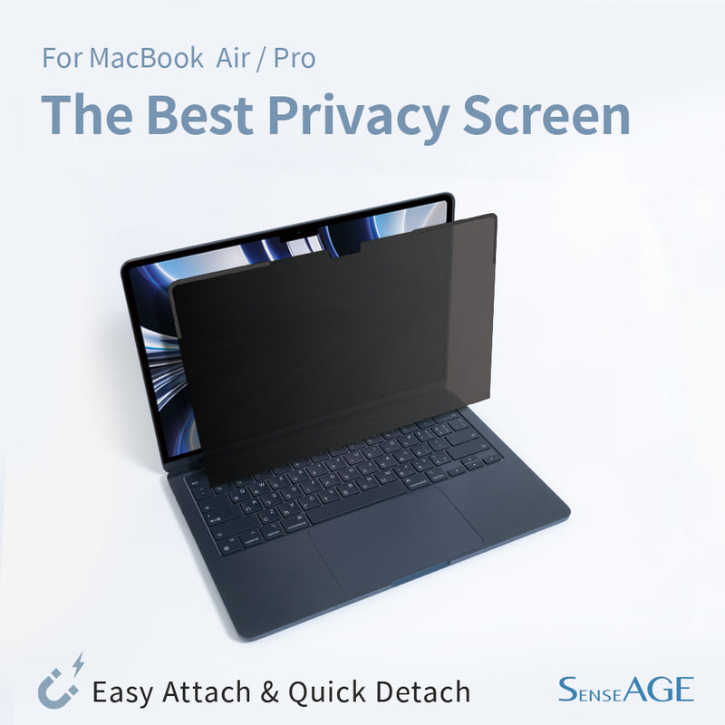 [Automatic Snap-on Magnetic Attachment]: Simply place the privacy screen along the top of your MacBook and let the magnets attach along the screen. No more adhesive. Easily remove and reattach when you need it.