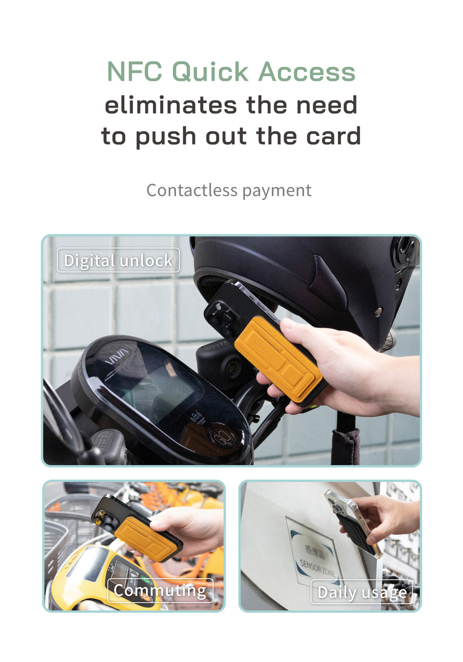 - Convenient Card Use - Place your NFC card or credit card in the front for easy access; swipe to use your card without having to remove it.